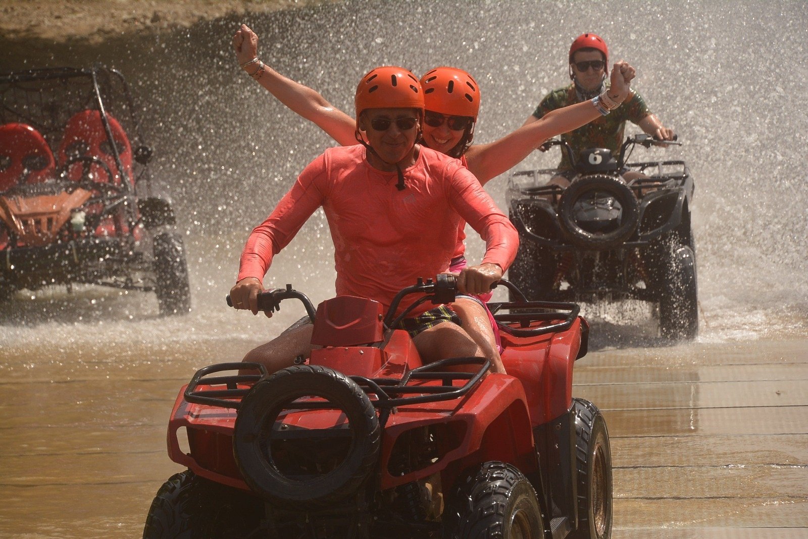 Супер, были вдвоём с девушкой на одном квадроцикле, очень понравилось. Позаботьтесь об одежде, обуви, защите дыхания и очках, так как экскурсия очень пыльная, а если повезёт то и грязная (маршрут был через ручей). На месте продают очки, банданы, закрытые тапочки, цены около 8 евро. Примерно на середине маршрута остановка на отдых с напитками, газировка 3 евро/доллара. В конце пути можно принять уличный душ.