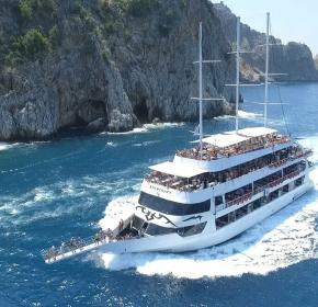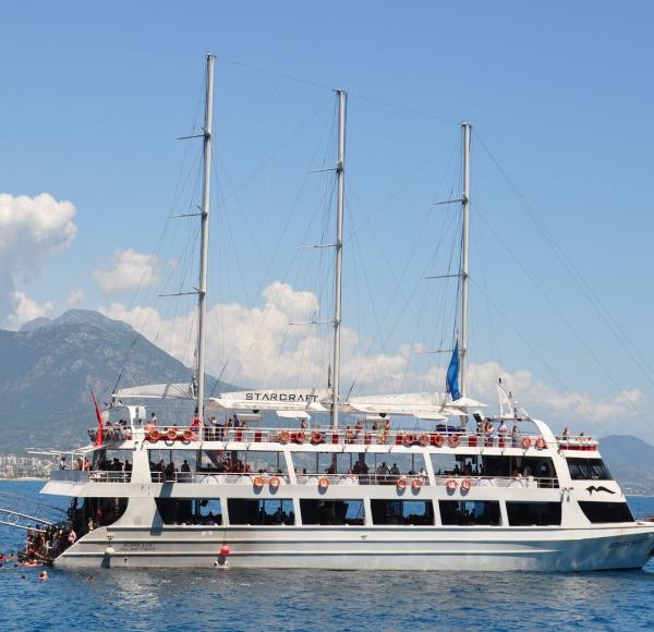 Прогулка на яхте – это отличная альтернатива отдыху в отеле. С борта корабля вы сможете увидеть завораживающие виды, уникальные пещеры и белоснежные пляжи Аланьи. Мы подготовили для вас насыщенный маршрут с остановкой на лазурном берегу, где можно искупаться прямо в открытом море. А развлекательная программа с музыкальным сопровождением точно поднимет настроение!
