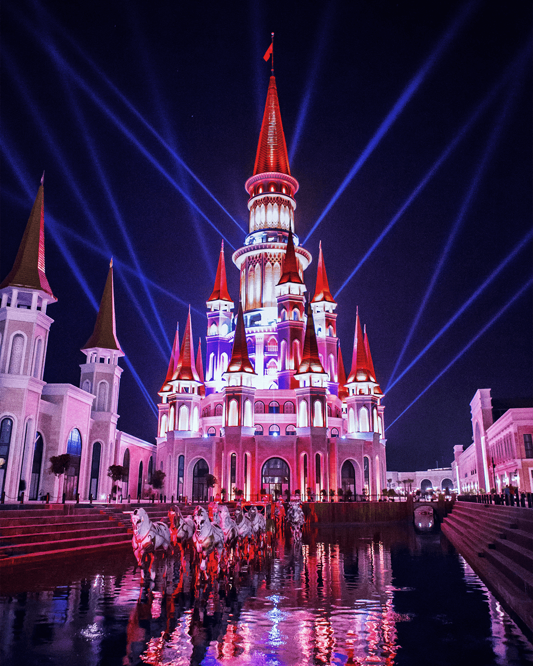 Отправьтесь в волшебный мир парка аттракционов Тhe Land of Legends! Яркие карнавалы, шоу поющих фонтанов, сказочные персонажи и многое другое предстанет перед вами вечером на фоне освещенного неоновыми огнями дворца. Вы станете свидетелем уникального представления и сможете прогуляться по территории парка, любуясь фейверками и переливающимися мыльными пузырями, падающими с крыш.